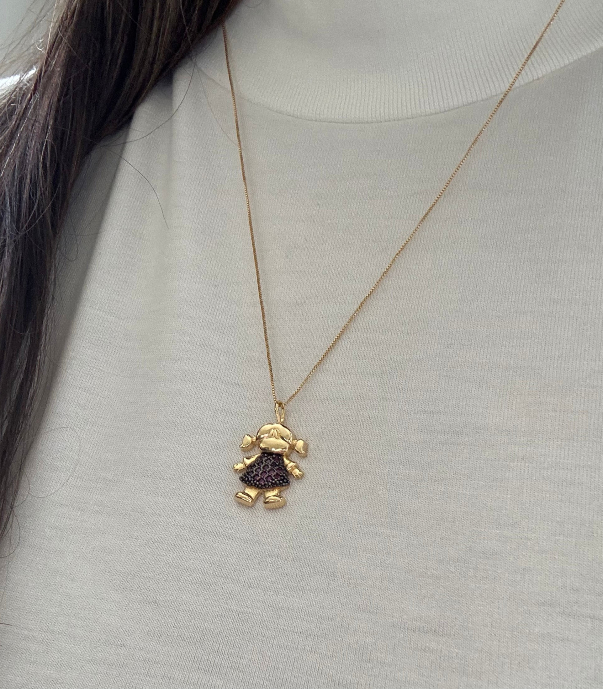 Girl Pendant with shimmering red stones - 18K Gold Plated